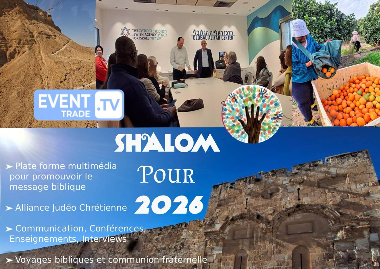 PRIERE SUR LES MURAILLES DE JERUSALEMVOYAGE COMPLET Voyage du 29 décembre 2025 au 6 janvier 2026 Pour groupe de pèlerins voyageurs, amis d’Event Trade TV " Sur tes murs, Jérusalem, j'ai placé des gardes ; Ils ne se tairont ni jour ni nuit. Vous qui la rappelez au...